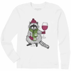 Women’s Fineline Warmly Dressed Racoon And Wine Long Sleeve Crusher Tee