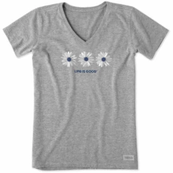 Women’s Three Painted Daisies Short SleeveVee