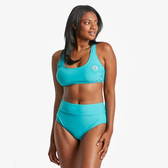 Dive into the water or just into a good summer read in this scoop bikini swimsuit. Features a tie back for perfect fit, plus matching bottoms are available.