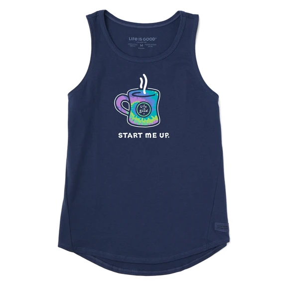 Women’s Tie Dye Start Me Up Mug Sleeveless High-Low Crusher Tank