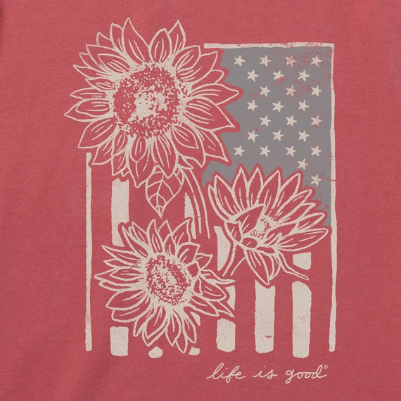 Women’s Woodcut Sunflower Flag Sleeveless High-Low Crusher Tank